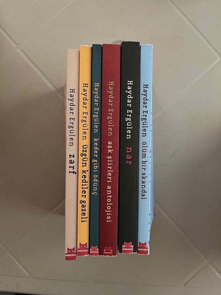 Haydar Ergülen tarafından yazılmış şiir kitaplarından oluşan Haydar Ergülen şiir seti satıştadır. Set içerisinde Zarf, Üzgün Kediler Gazeli, Keder Gibi Ödünç, Aşk Şiirleri Antolojisi, Nar ve Ölüm Bir Skandal kitapları yer almaktadır. Haydar Ergülen şiirleri, modern Türk şiiri, çağdaş şiir ve edebiyat kitapları kategorisinde değerlendirilmektedir. Haydar Ergülen, Haydar Ergülen şiir, Haydar Ergülen set, Zarf, Üzgün Kediler Gazeli, Keder Gibi Ödünç, Aşk Şiirleri Antolojisi, Nar, Ölüm Bir Skandal, şiir kitabı, Türk şiiri, çağdaş şiir, edebiyat kitabı, ikinci el kitap, temiz kitap