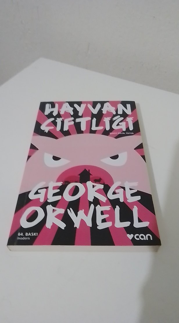 George Orwell'in "Hayvan Çiftliği" romanı, temalarını yansıtan stilize bir domuz kapağı ile Can Yayınları tarafından yayımlandı.