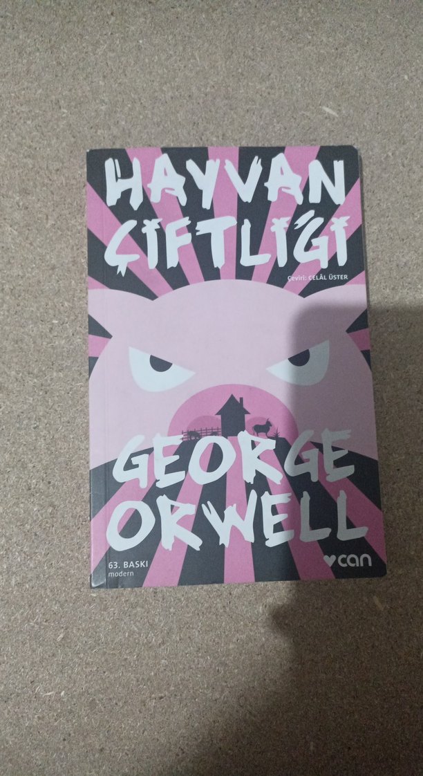 George Orwell'in 'Hayvan Çiftliği' romanı, pembe domuz görselli dikkat çekici kapakla. Can Yayınları'ndan.