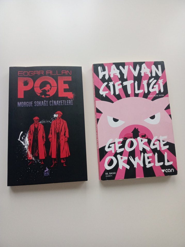 George Orwell'dan Hayvan Çiftliği ve Edgar Allan Poe'dan Morgue Sokağı Cinayetleri romanları seti.