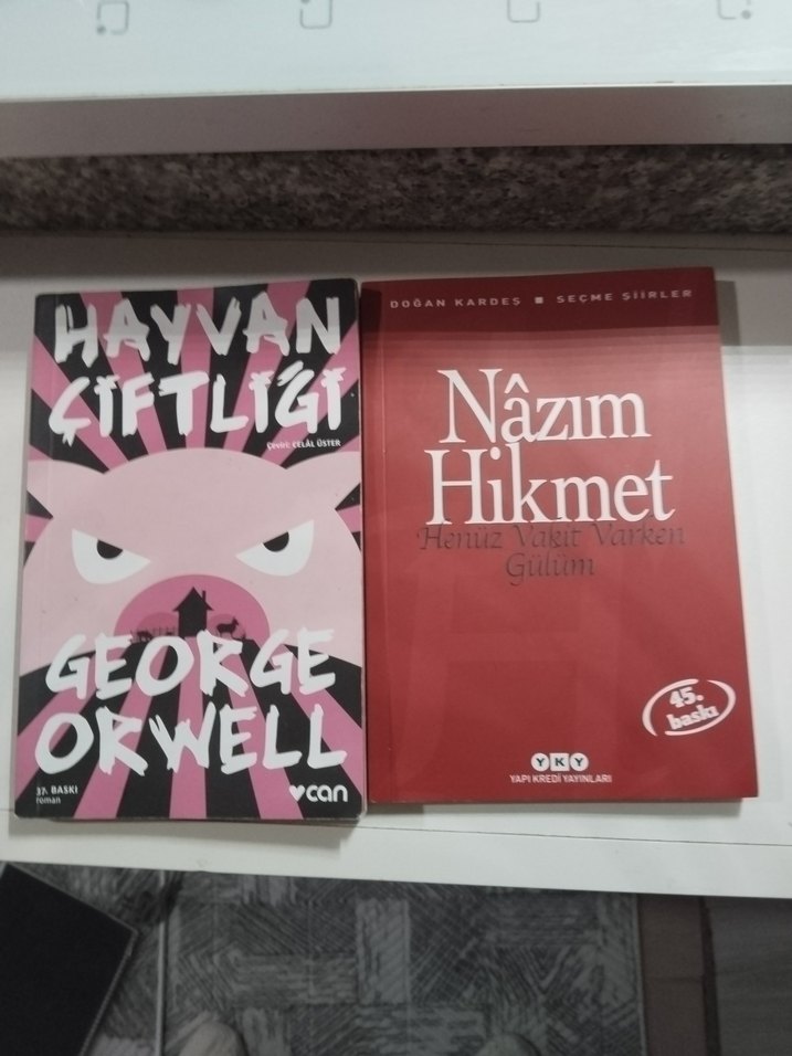 George Orwell'in 'Hayvan Çiftliği' ve Nazım Hikmet'in seçme şiirlerinin yer aldığı edebi eserler seti.