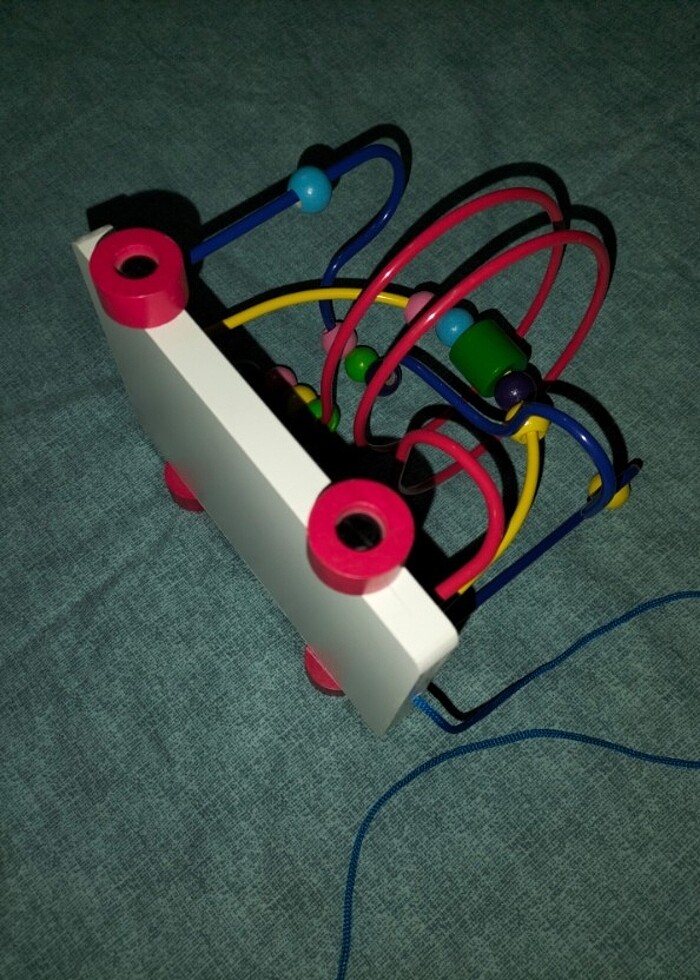 Doğal ahşaptır. Kullanılmamıştır. İnce ve kaba motor beceri kazanımları, sabır dikkat odaklanmayi geliştirme, renk kazanımları için kullanılabilir. İpiyle çekilerek tekerlekleri sayesinde araba gibi surulebilir
