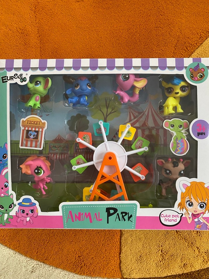 Renkli mini hayvan figürleri ve küçük bir dönme dolap içeren Hayvan Parkı oyuncak seti. Ambalajda "ANIMALPARK" yazısı bulunur. ( Bir orijinal miniş ile takas olur. )