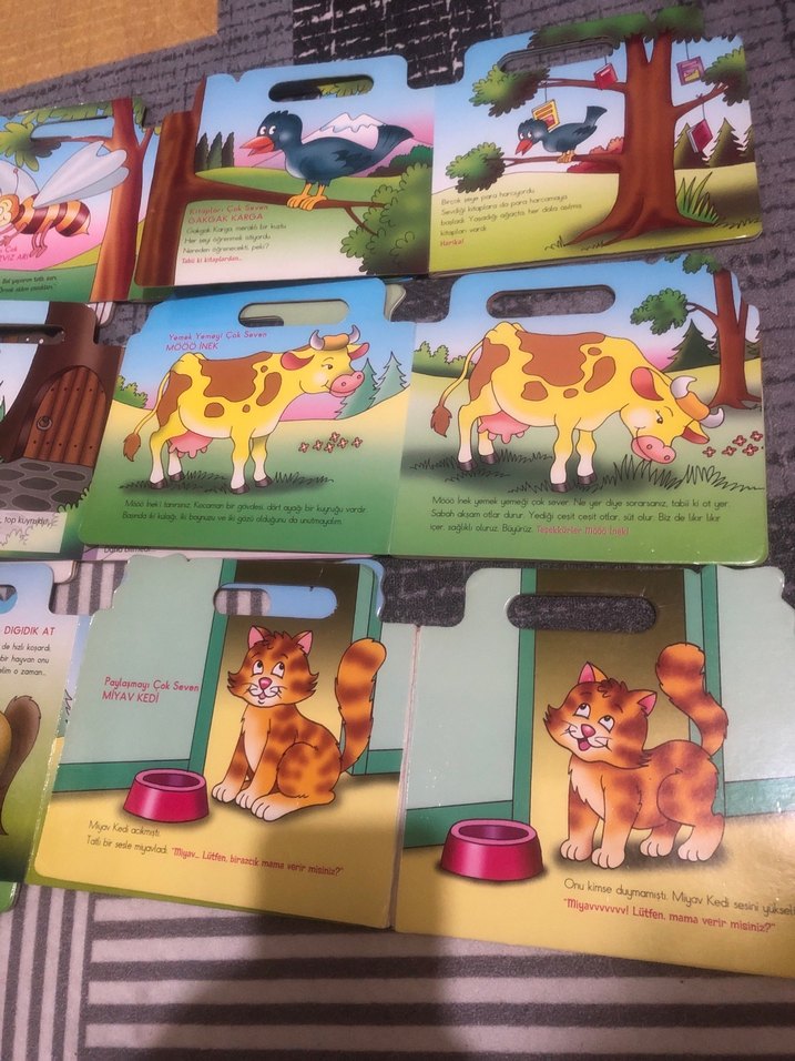 Renkli hayvan resimleri ve basit Türkçe metinlerle hazırlanmış çocuklar için hayvanlar kitabı seti.