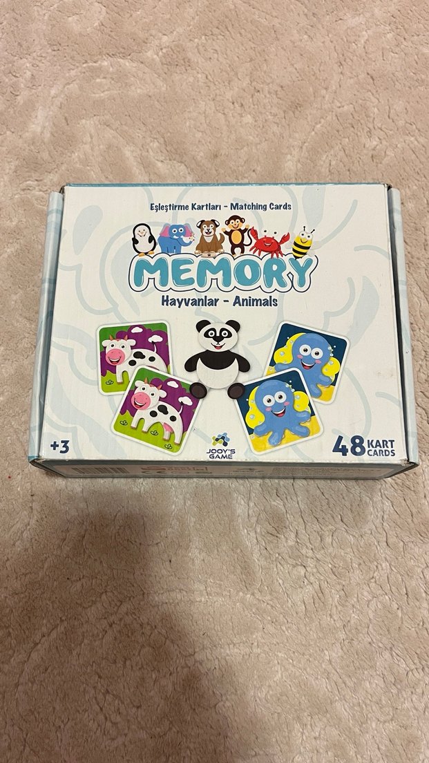 48 parçadan oluşan, çeşitli hayvan figürlü renkli eşleştirme kartlarıdır. 3 yaş ve üzeri çocukların hafıza becerilerini geliştirir. 5 adeti kayıp toplam parça sayısı 38 dir fazlasıyla yeterlidir