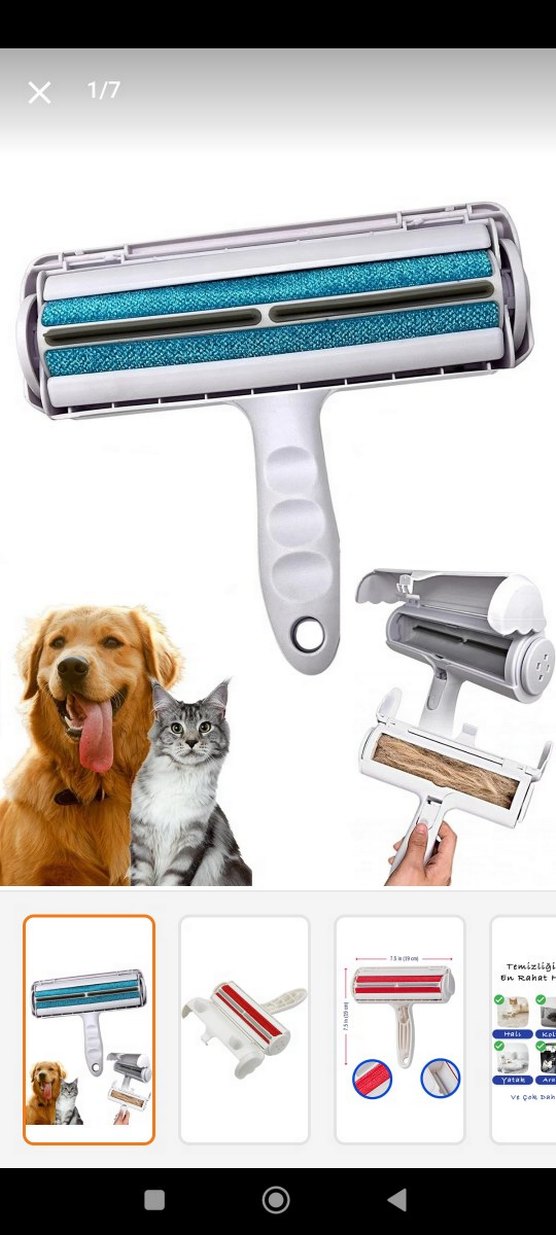 Kedi ve köpek tüylerini toplamak için rulo ve beyaz saplı tüy toplayıcı fırça.