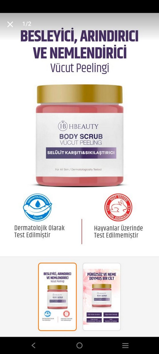 HBBeauty vücut peelingi, selülit karşıtı ve sıkılaştırıcı etkiler sunar. Dermatolojik olarak test edilmiştir, hayvanlar üzerinde test edilmemiştir. Cildi pürüzsüzleştirir ve nemlendirir.