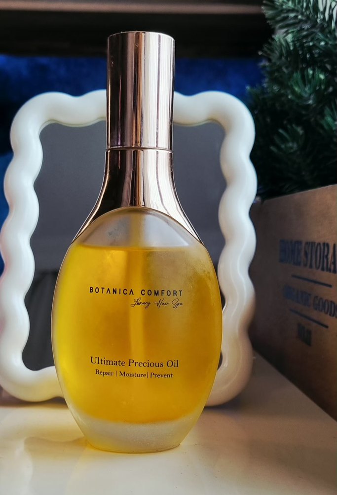 BOTANICA COMFORT Ultimate Precious Oil, onarım, nem ve koruma sağlar. Şık şişede besleyici bakım ve hafif koku sunar.