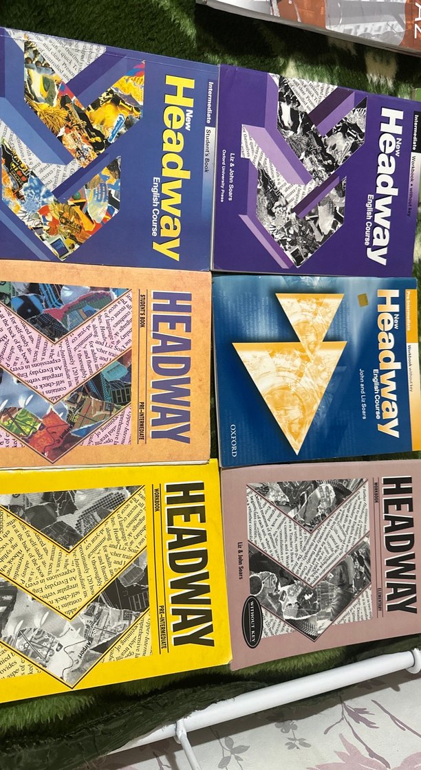Oxford yayınevi tarafından basılmış, farklı seviyeler için renkli kapaklara sahip Headway İngilizce eğitim kitapları seti. 6 kitap bi arada satılık