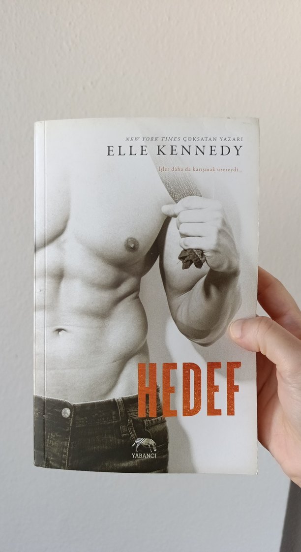 Yabancı yayınlarından New York Times çok satan yazarı Elle Kennedy'nin "Hedef" adlı romanı. Kapakta güçlü bir erkek figürü yer alıyor.