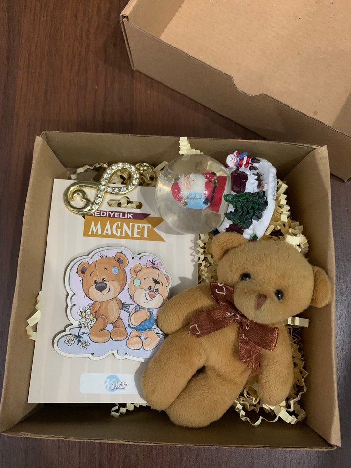 Kar küresi, ayıcık, ayıcıklı magnet ve anahtarlık hediye kutusu.