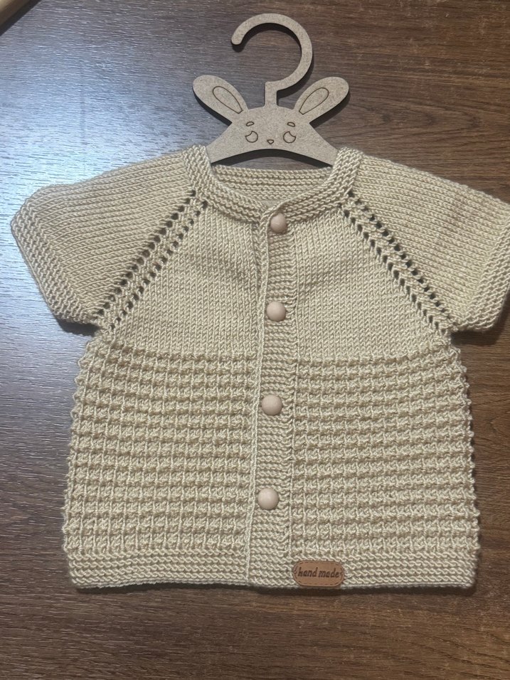 Bej renkli, kısa kollu, yuvarlakyakalı ,hediyelik unisex bebek yeleği
