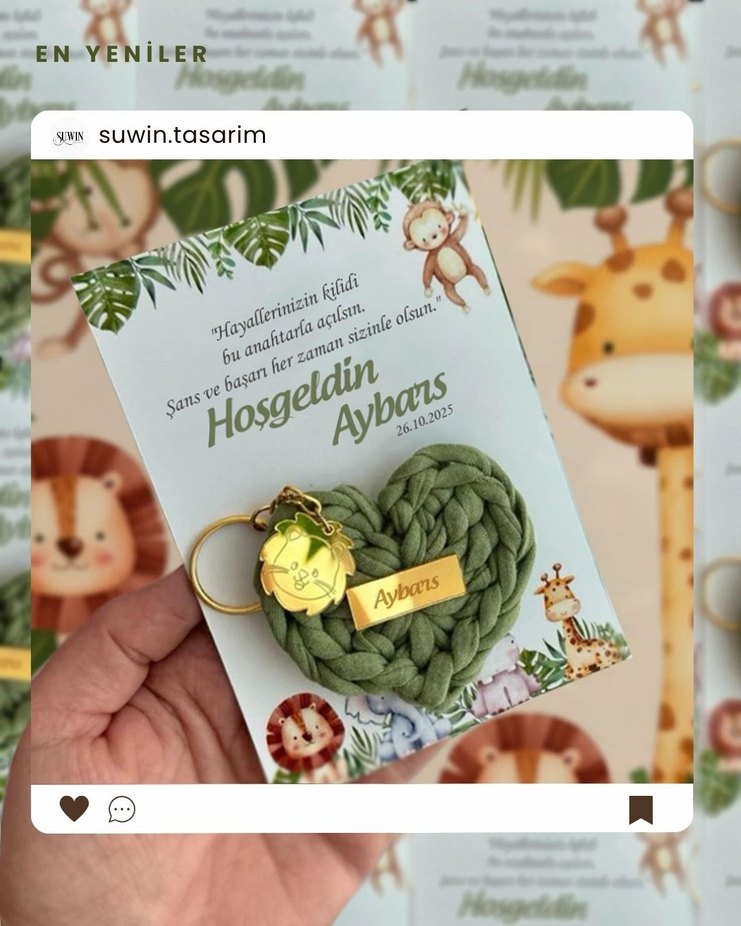 Pastel haki renkte örgü kalp ve isim yazılı altın rengi aksesuar içeren bohem tarzda anahtarlık. Sade ve huzurlu bir görünüm sunar.