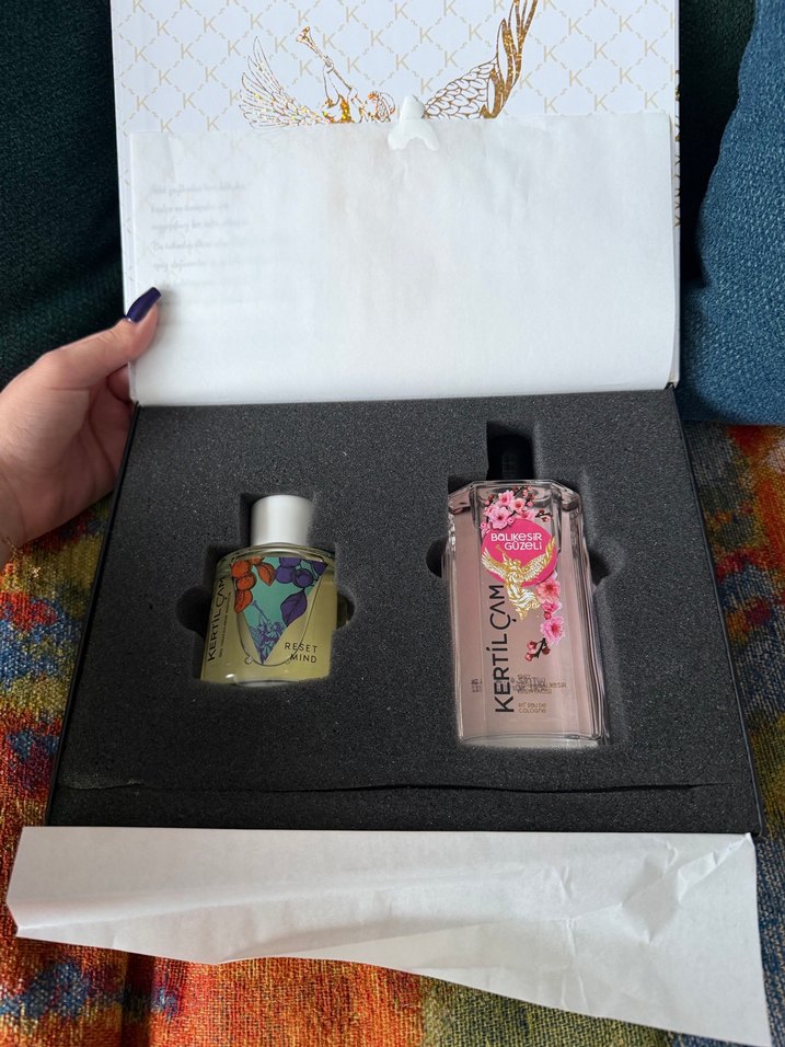 icinde bir adet oda kokusu ve bir adet cam sise kolonya bulinmaktadir set halinde hic kullanmadim