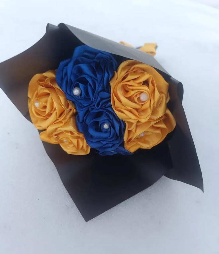Hediyelik Mavi Sarı Gül buketi
