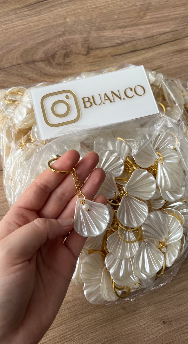 Adet 6.5₺’dir. En az alım 10 adet. İlan açtırınız. Temiz sıfır el yapımı. istiridye anahtarlık midye anahtarlık hediyelik anahtarlık Altın detaylı, deniz kabuğu şeklinde beyaz boncuklu anahtarlık, bohem ve Paris tarzını yansıtıyor.
