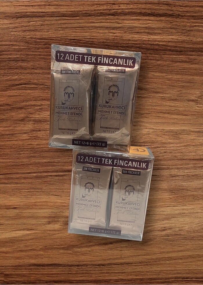 KURU KAHVECİ MEHMET EFENDİ TEK İÇİMLİK TÜRK KAHVESİ 12X6 GR (2 KUTU 24 ADET ) DÜĞÜN NİŞAN SÖZ EV ZİYARETLERİNE HEDİYELİK TÜRK KAHVESİ Kurukahveci Mehmet Efendi Türk Kahvesi 12*6 G Tek İçimlik Folyo Ambalaj X 2 Adet; Kuru Kahveci Mehmet Efendi kahveleri özel ambalajlarında sunulan Nefis Türk Kahvemizi istediğiniz kadar alıp, istediğiniz kadar saklayabilirsiniz. Kokusuyla, tadıyla, öğütüldüğü günkü tazeliğini koruyacaktır Özenli paketleme Yerli üretim