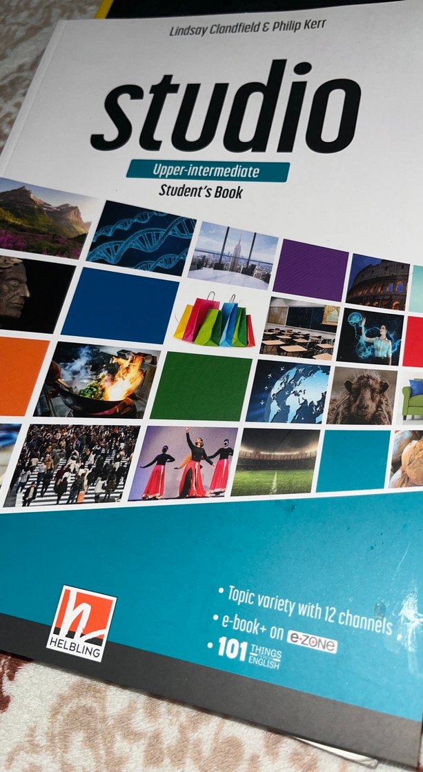 Helbling Studio Upper-Intermediate Öğrenci Kitabı, 12 farklı kanal üzerinden çeşitli konular içerir. E-kitap ve e-zone erişimi sunar.