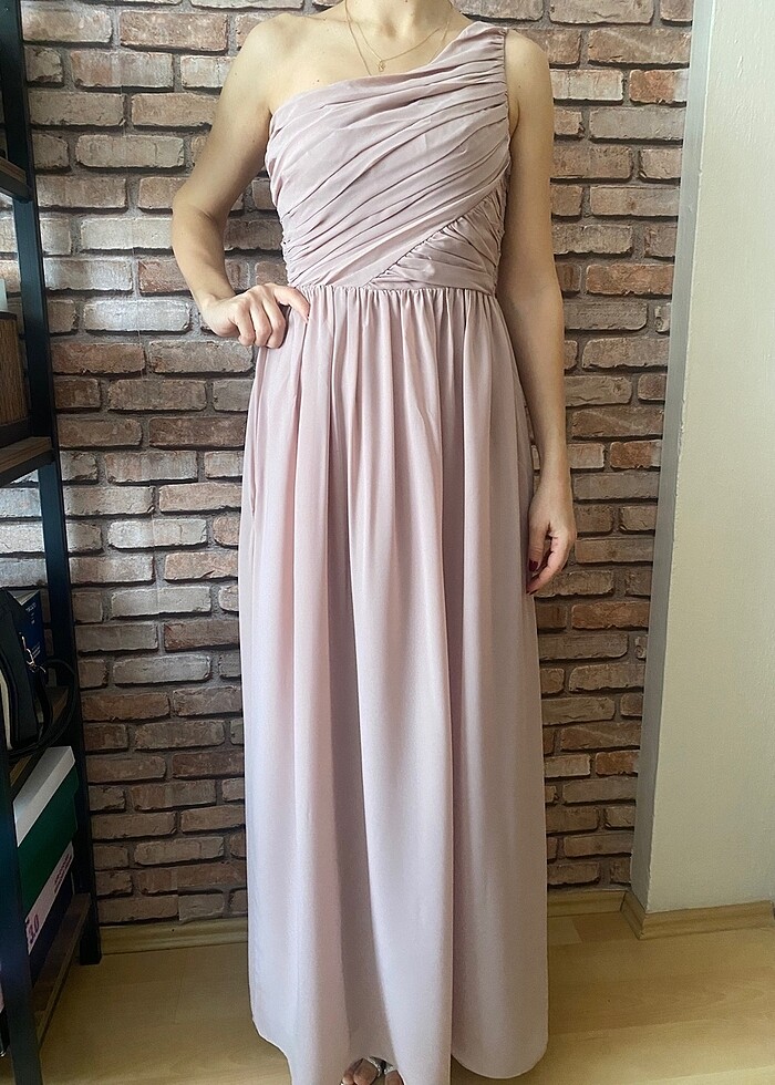 Helen tarzı tek omuz şifon abiye elbise. H&m marka s beden.