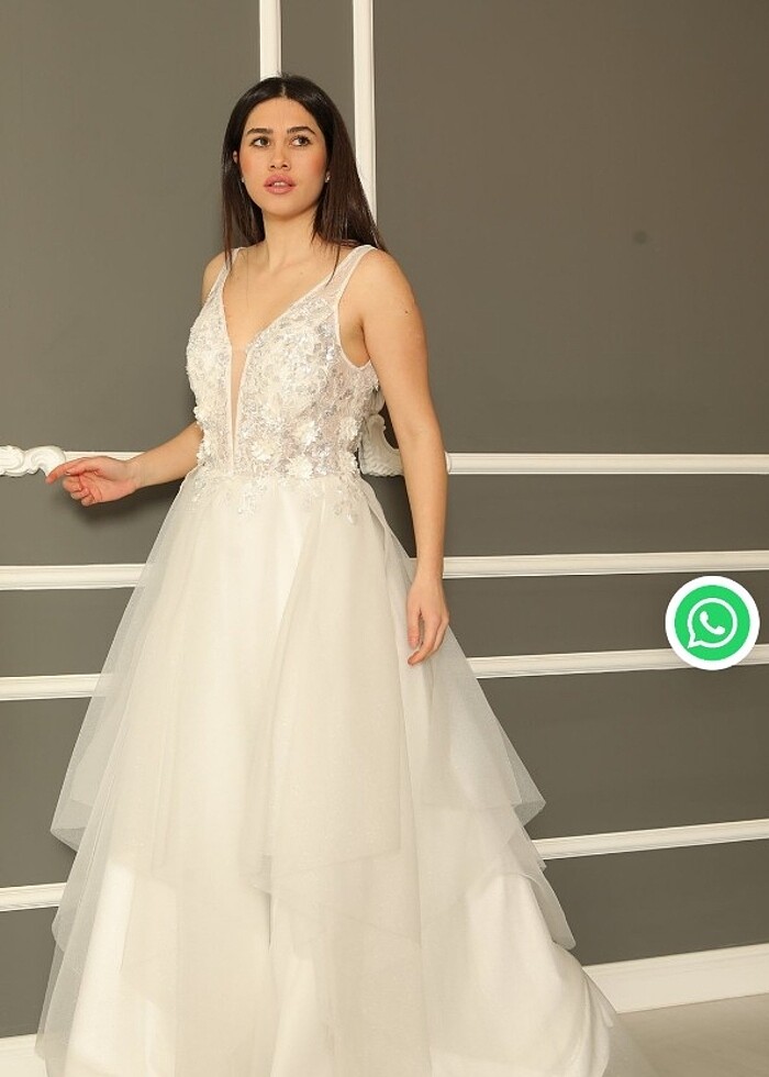 sadece dış çekim için 1 kez giyildi...sadece yerleri süpürdüğu için etek uçlarında bir kirlenme vardır.. onun haricinde temizdir. Kuru temizlemesi yapılmamıştir. Alana şimdiden uğur getirsin #gelinlik #düğün #helen #vintage #nikah #dışçekim