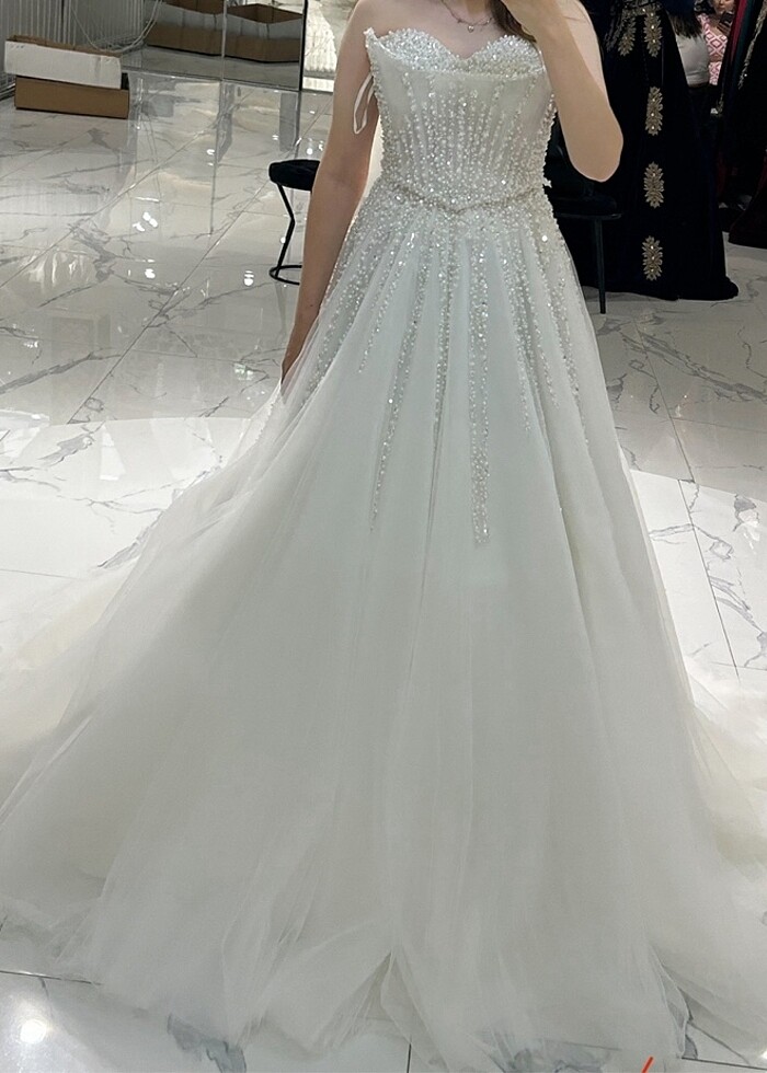 Düğünümde 3 saat giydim özel tasarlandı. Arkası ipli olduğu için 36-40 bedene kadar uyumlu. Çıkarılabilir tül pliseli kollukları var, tarlatanı ile vereceğim. Bursa içi deneyip alabilir fiyat konusunda yardımcı olabilirim