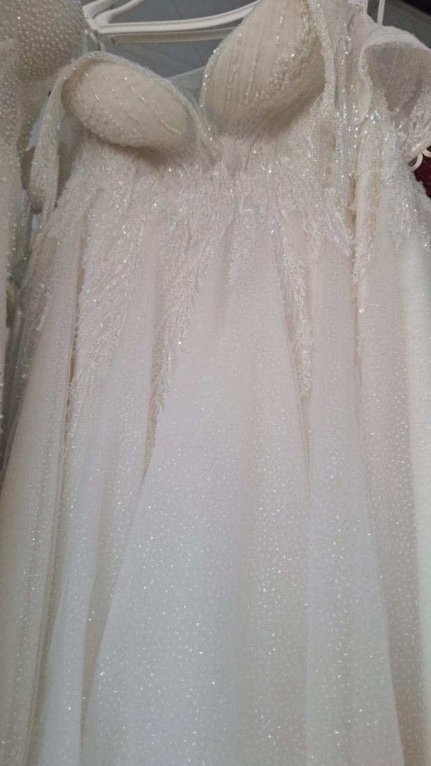 zarif ışıltılı detaylarla tasarlanmış gelinlik.