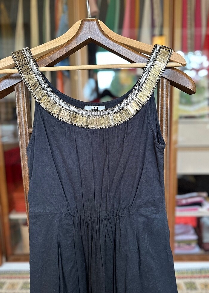 Özel taşlı kayık yaka, oldukça zarif… Kumaşı pamuklu ve astarlı. Belinde lastik detayıyla bedene uyumlu ve cepli… Gündelik, özel günlerde hatta tatilde tercih edilebilir…
