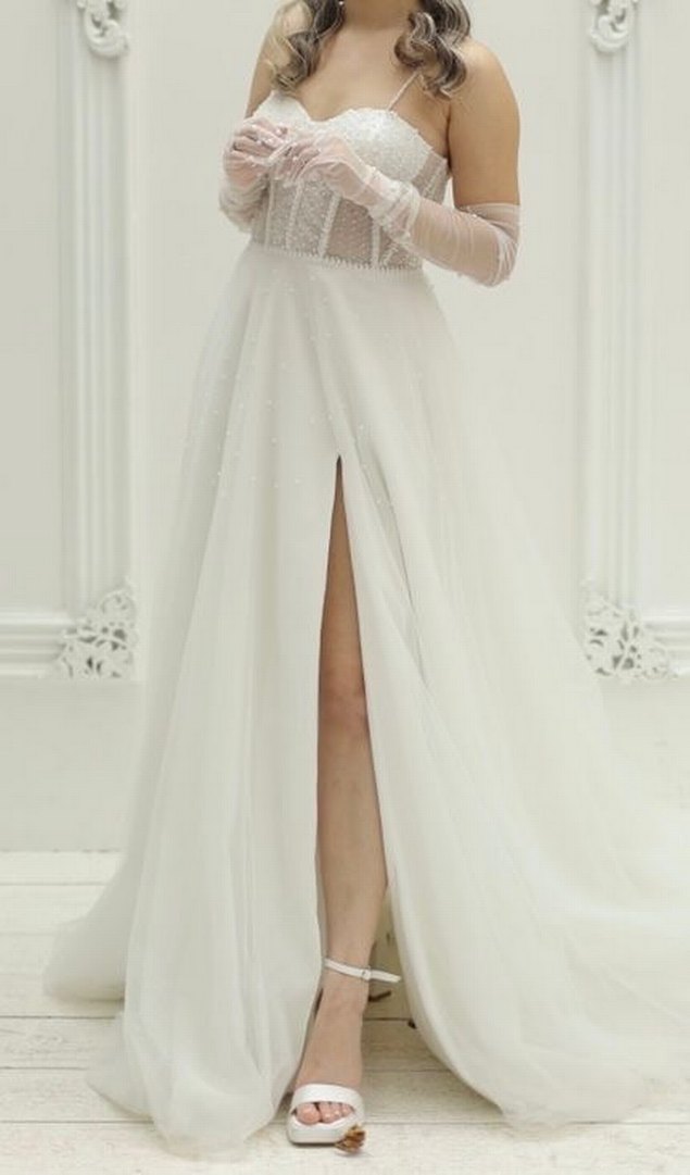 Uzun Kuyruklu Helen Yırtmaçlı Gelinlik boy:168 kilo:58