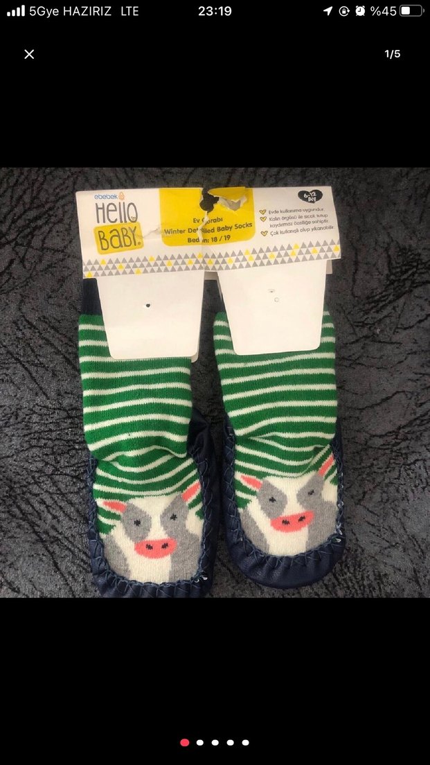 Hello Baby erkek çorapları, yeşil-beyaz çizgili inek deseni ve yumuşak tabanlıdır. Çok renkli tasarımı eğlenceli bir dokunuş katar.