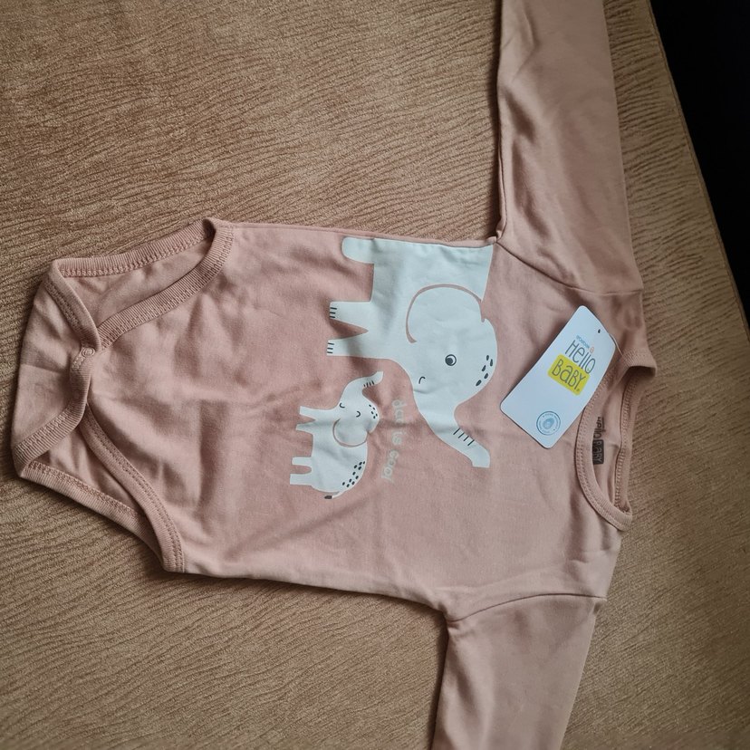 Uzun kollu, bisiklet yaka, bej renkli body, sevimli baba-oğul konseptli fil baskılıdır. Etiketi üzerinde sıfır üründür.