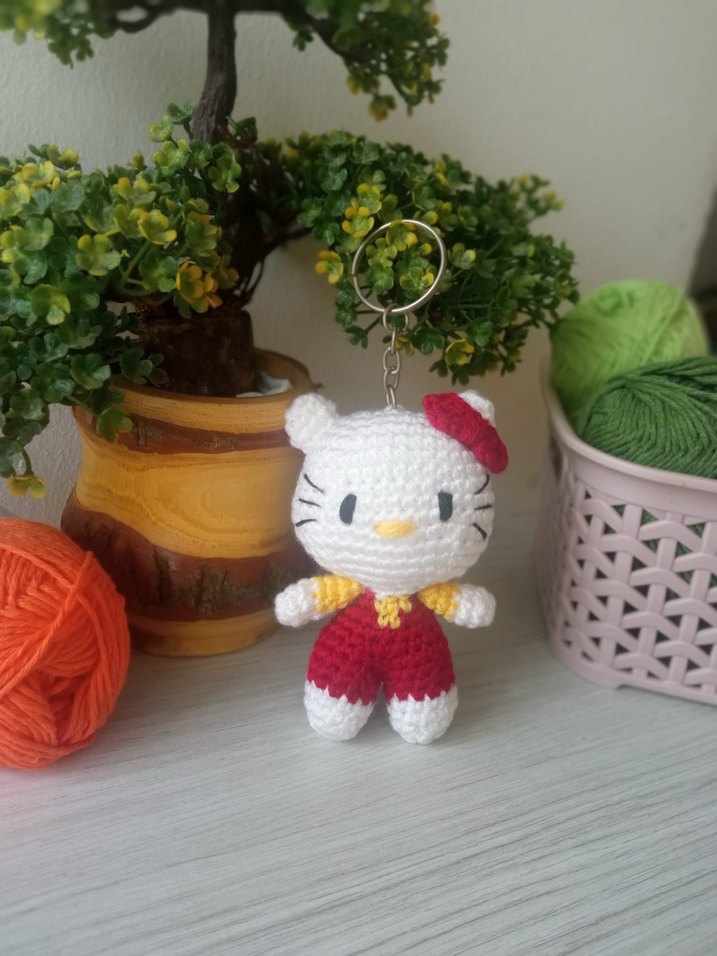Hello kittiy amigurumi kırmızı tulumlu anahtarlık