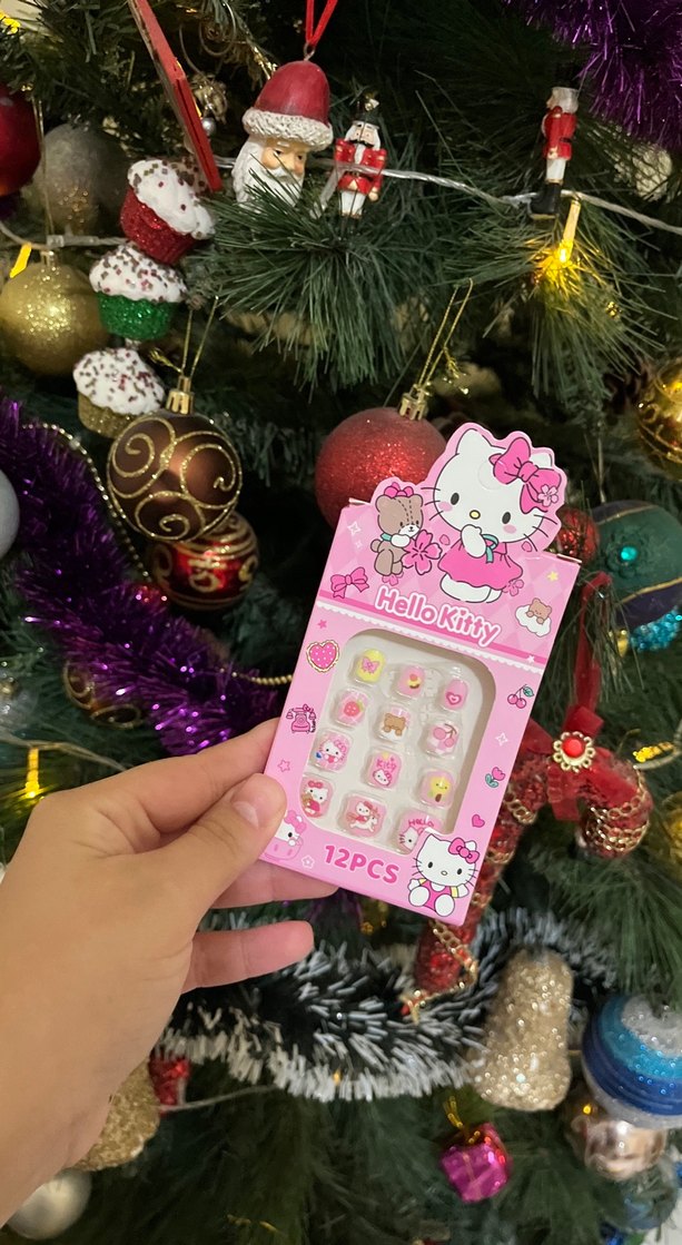 Hello Kitty desenli, pastel pembe renkte 12'li tırnak süsleri seti. Tırnaklara sevimli ve eğlenceli bir görünüm kazandırır. Çocuk tırnak