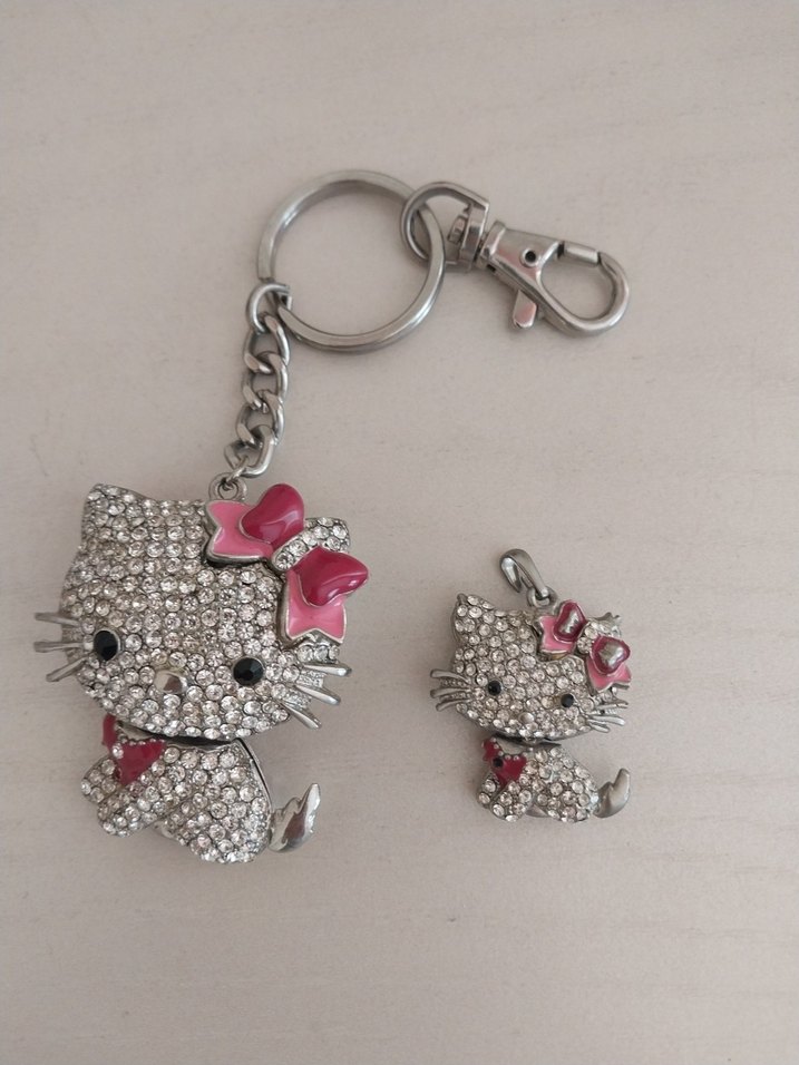 hello kitty celik anahtarlik ve kolye ucu. govdesi hareketlidir. sanirim zirkon tasli, ağır ve şık bir aksesuar.✨