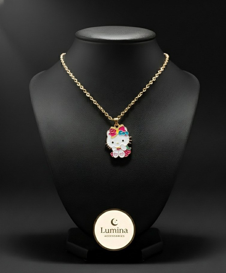 Gümüş zincir, renkli baskılı sevimli karakter kolye ucu ile detaylıdır. Parlak ve şık, parti için uygundur. Marka: Lumina. ✨