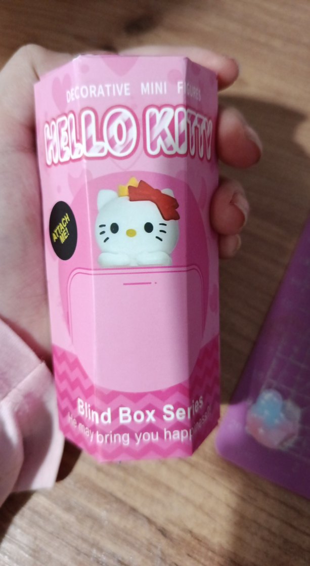 Pastel pembe renkte Hello Kitty mini dekoratif figür, Blind Box Serisi'nden ve mutluluk getirmeyi amaçlıyor.