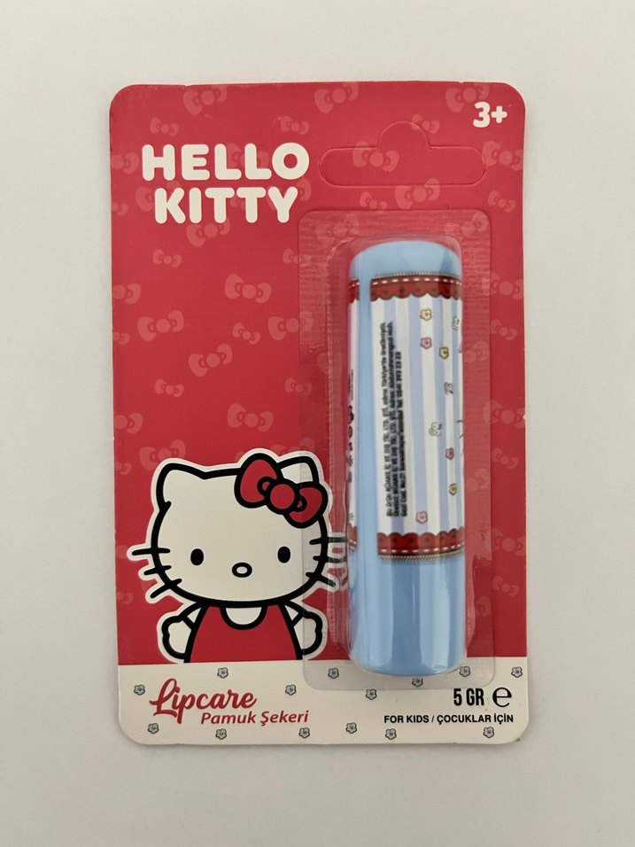 Hello Kitty markalı, pamuk şekeri aromalı dudak nemlendiricisi. 3 yaş ve üzeri çocuklar için uygundur.
