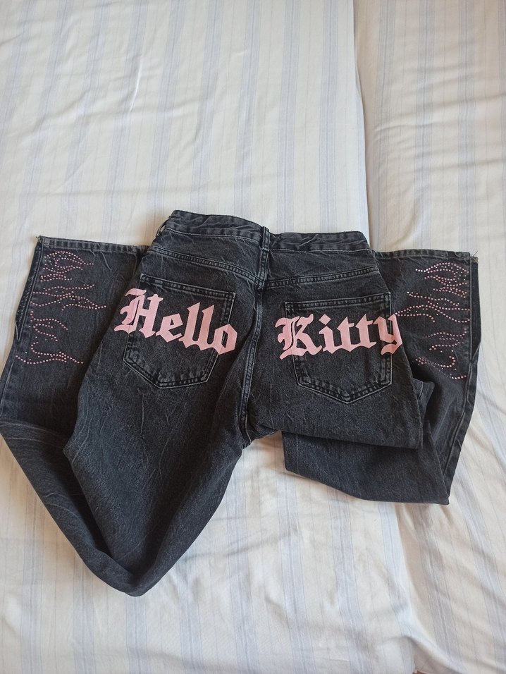 hello kitty Payet Detaylı Siyah Salaş Kot Pantolon