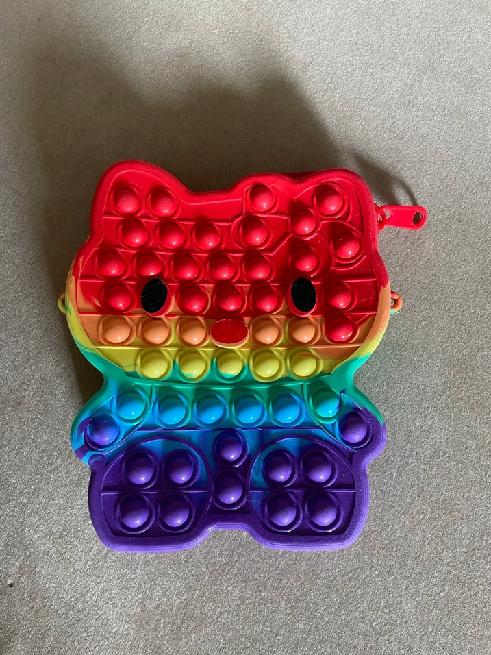 14.5-12.5 cm ölçü. Askısı kayıp, renkli ipler vb kendi askınızı yapabilirsiniz. Kalem cüzdanı, makyaj çantası vb olarak da kullanılabilinir. Arkasında iki minik leke var. Bunu dışında hiç bir yırtık vb sorun yok. #HelloKittyRenkliSlikonÇanta #HelloKittyPopItRenkliSlikonÇanta