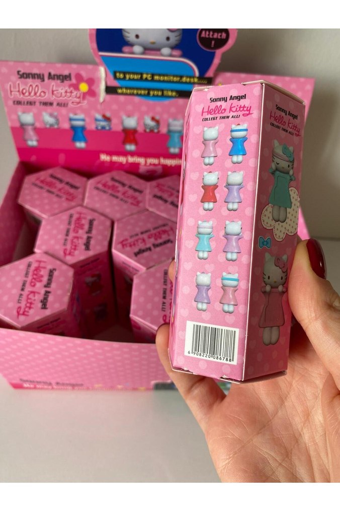 Hello Kitty temalı, koleksiyonluk küçük figürler içeren pembe kutuda 1 paket