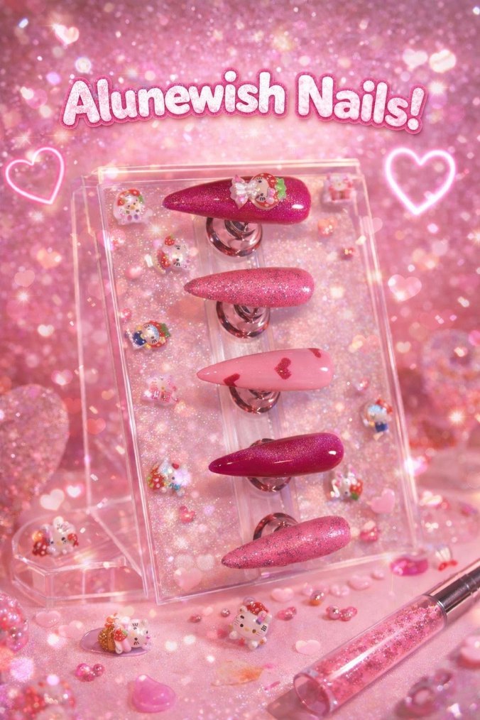 El yapımı hello kitty press on nail set base+top+ kalıcı oje ile yapılmıştır. 2 tırnak cat eye inspo: pinterest, hellokitty, cute, lolita isterseniz charmı çıkarabilirim veya başka tırnağa takabilirim ✨ fotoğraflar bana aittir