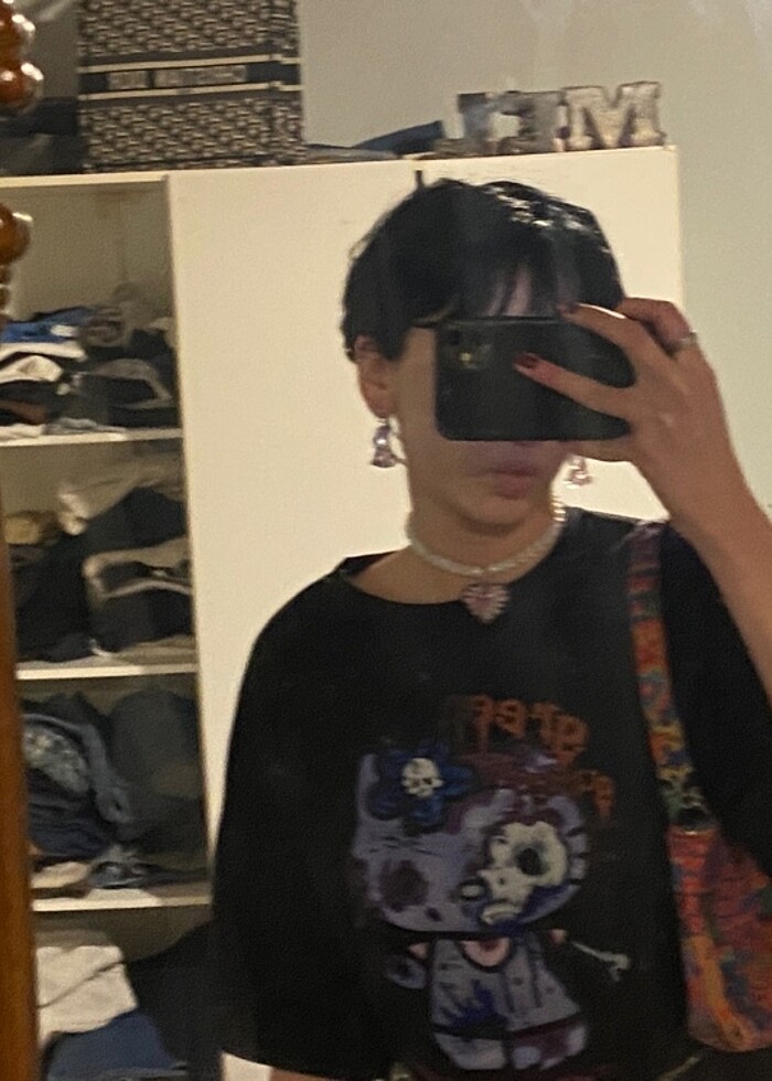 Gothic tarz hello kitty tişört oversize