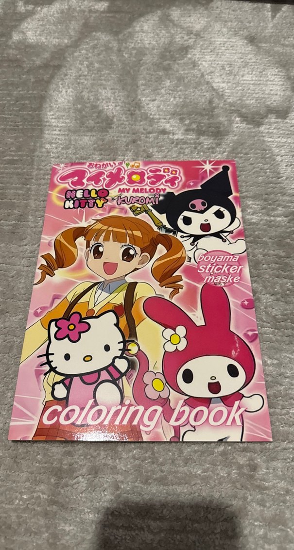 Hello Kitty, My Melody ve Kuromi karakterlerini içeren, sticker ve maske bulunan boyama kitabı. Kullanılmamıştır, Boyama kitabı maske ve sticker hediyelidir kitabın arka kapağı maskedir 8 yaprak toplamda16 sayfa boyamadan oluşur kullanılmamıştır #boyamakitabı #doğumgünühediyelik #doğumgünükonsept #hellokitty #kuromi #sanrio #mymelody