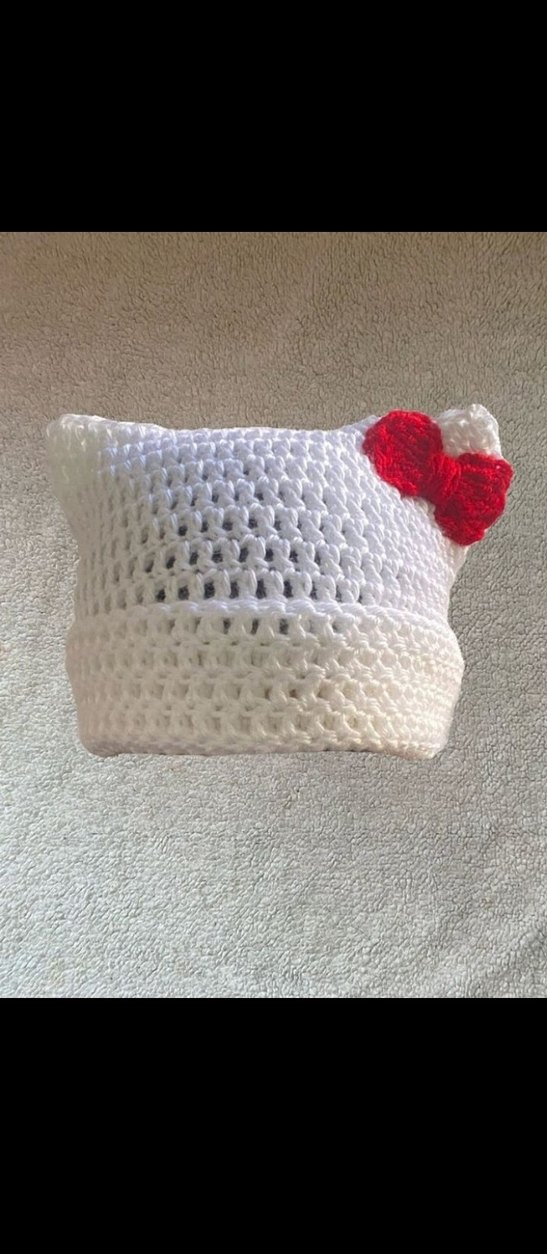 Beyaz örgü bere kırmızı fiyonklu.. Fıtık rengini istediğiniz bir renkte gönderirim