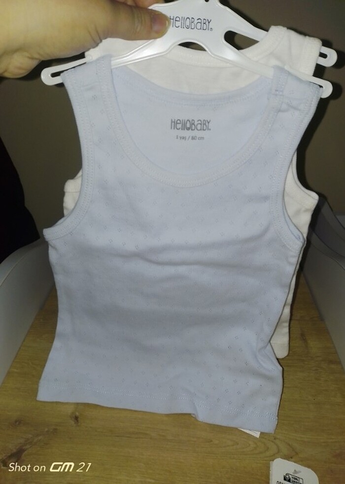 Hellobaby 2 li atlet bir tanesi jakarlı mavi diğer düz beyaz sıfır yeni etiketli 1 yaş