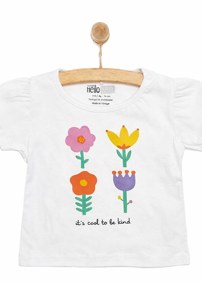 Beyaz Renk Baskılı 6 aylık kız tişört Yaka Tipi: Bisiklet Yaka Kol Tipi: Kısa Kol Kullanım Tipi: Günlük Kullanım Kalıp: Normal Kalıp Kumaş: 100 Pamuk Yumuşak kumaş dokusu ve rahat kalıba sahiptir. 30 derecede yıkanabilir.