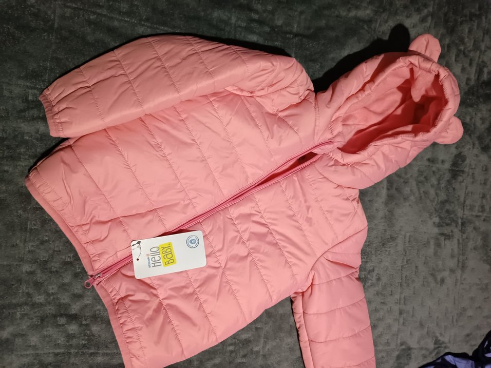 Hellobaby Fermuarlı, notched lapel yakalı, pastel pembe renkli kız çocuk montu, yumuşak ve sıcak kumaştan üretilmiştir.