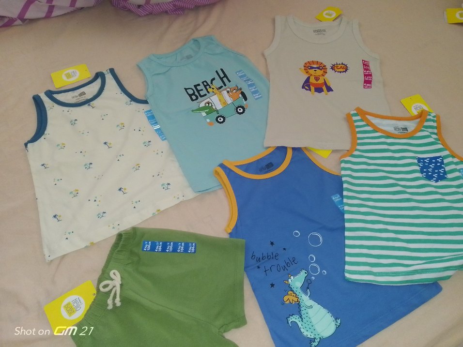 Renkli baskılı, mavi tabanlı erkek çocuk atleti. Dinozor ve baloncuk desenli, kolsuz kesimle rahat kullanım sağlar. hellobaby t-shirt şort... makul fiyat söyleyin sizin olsun .. temsili fiyat . 5 adet t-shirt 1 şort
