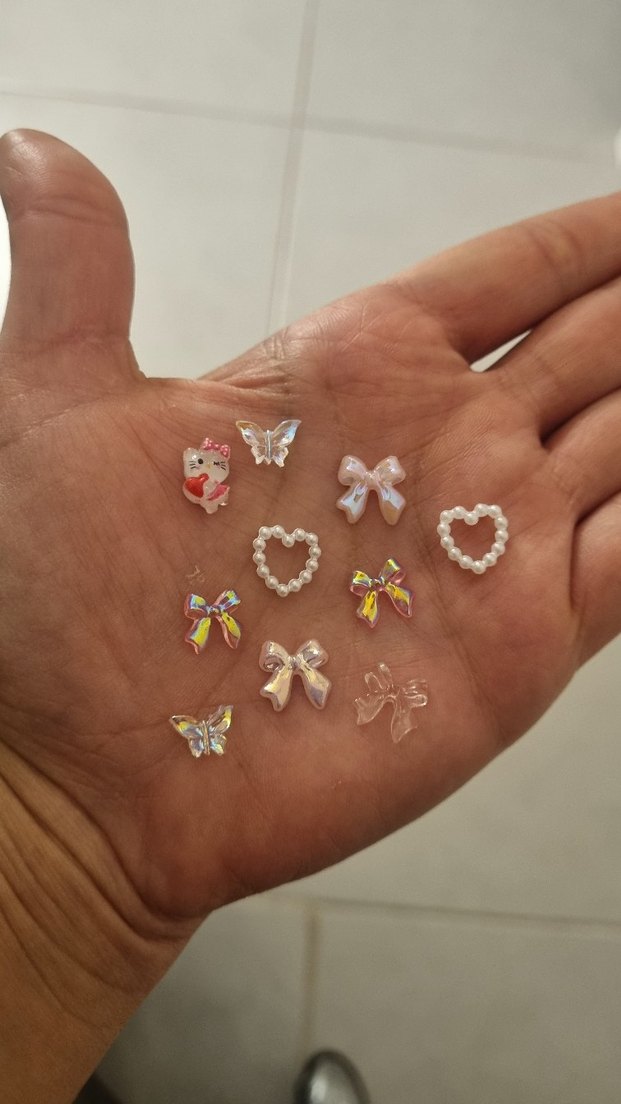 Fiyonk, kalp, kelebek ve sevimli balık figürlerinden oluşan renkli ve küçük tırnak süslemeleri seti. Tırnaklara şıklık katar.