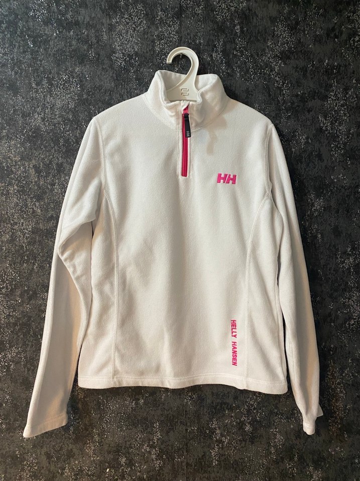 beyaz polar sweatshirt, yüksek yakalı ve yarım fermuarlıdır. Vücuda oturan kesimi ve 'HH' ile 'Helly Hansen' baskıları vardır. Outdoor için uygundur. Ürün kullanılmadı sayılır bir kez denendi beden olmuyor defosuzdur çok kaliteli markayı bilen bilir zaten trendyoldaki bilgilerini yazdım ben mağazasından almıştım