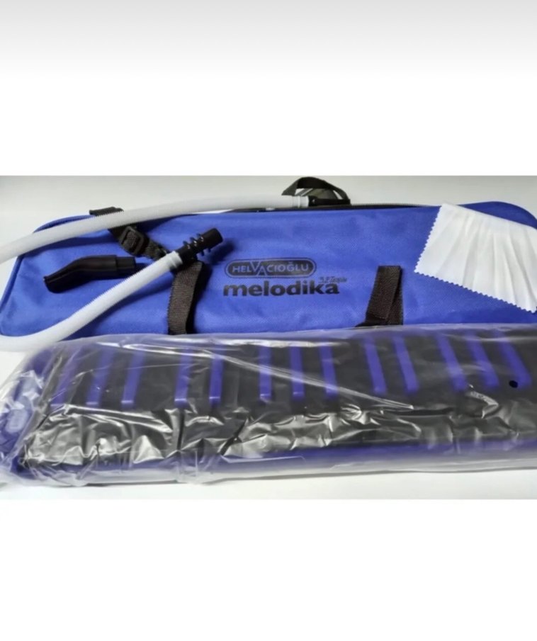 Helvacioglu melodika koyu mavi renkte, esnek ağızlık ve taşıma çantası ile birlikte gelir.